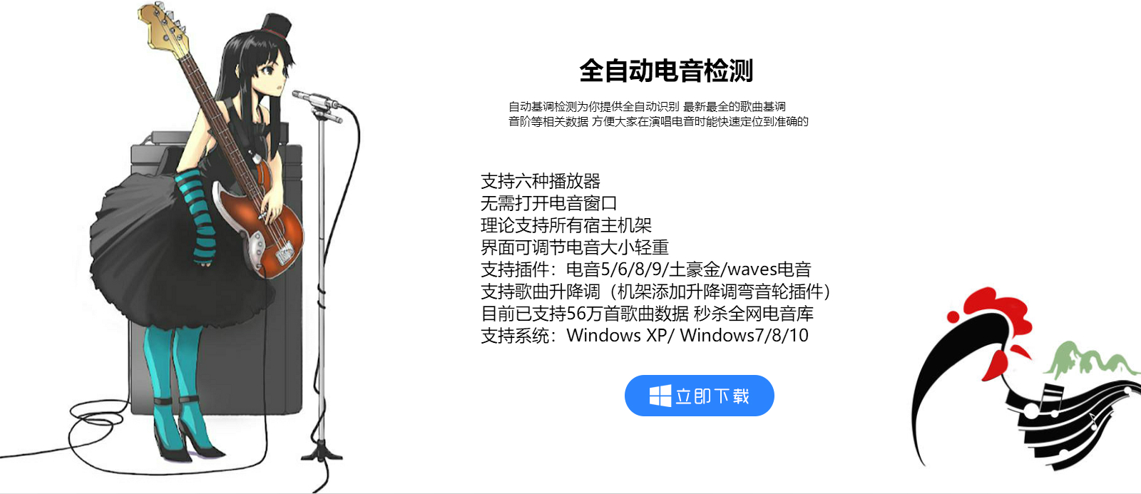 唱电音再也不需要百度搜索了,连更改基调都自动化了呢! 采用云计算精准识别基调,准确率全网最高! 全自动检测当前播的歌曲,软件自动后台搜索,讲基调显示出来,仅需1秒,大大省时省力,提高效率。